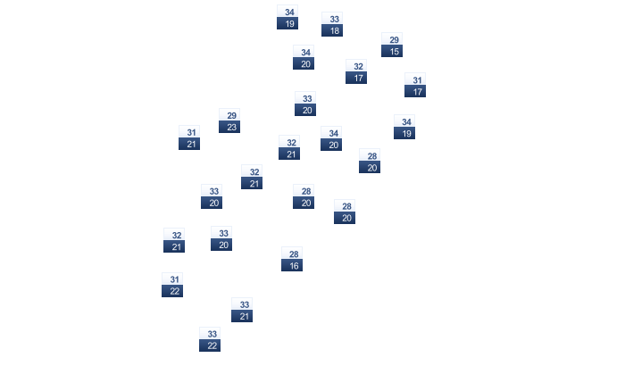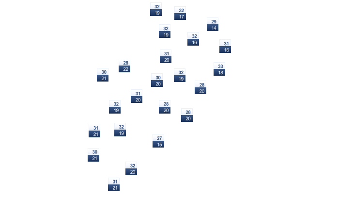 | 20 | 21 | 22 | 23 | 23 | 23 | 23 | 22 | 22 | 22 | 21 | 20 |