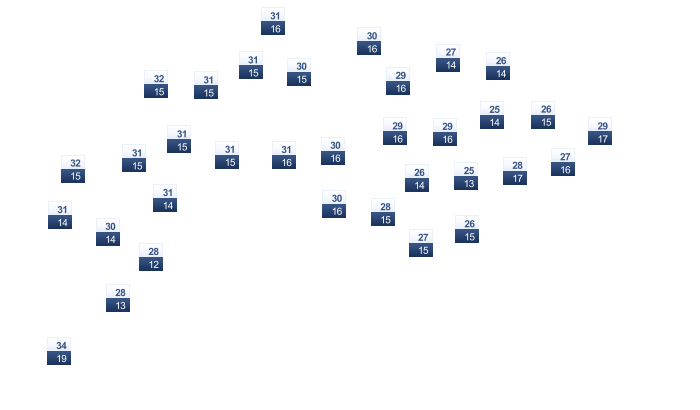 | 31 | 32 | 34 | 34 | 34 | 31 | 31 | 31 | 31 | 31 | 31 | 31 |
