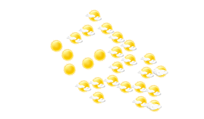 In San Juan del Sur gibt es morgens ungestörten Sonnenschein und die Temperatur liegt bei 26°C. Am Mittag gibt es eine Mischung aus Sonne und Wolken bei Höchstwerten von 34°C. Am Abend ist es in San Juan del Sur wolkenlos und die Temperaturen liegen zwischen 28 und 30 Grad. Nachts ist es klar bei einer Temperatur von 26°C. Mit Geschwindigkeiten von 25 bis 30 km/h weht der Wind aus nordöstlicher Richtung.