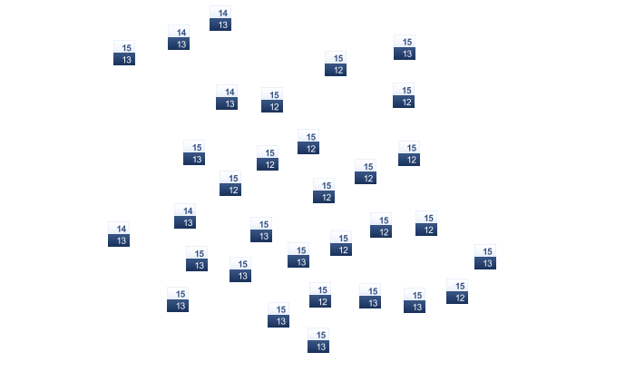 3 | 3 | 4 | 7 | 10 | 14 | 15 | 16 | 14 | 10 | 7 | 6 |