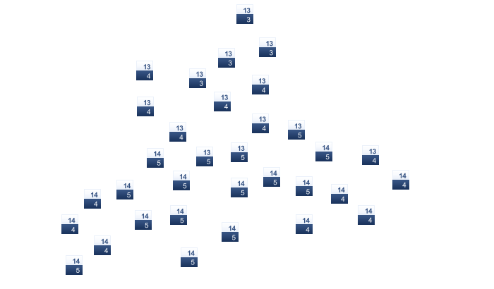 | 3 | 3 | 4 | 7 | 10 | 14 | 15 | 16 | 14 | 10 | 7 | 6 |