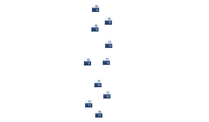 | 3 | 3 | 4 | 7 | 10 | 14 | 15 | 16 | 14 | 10 | 7 | 6 |