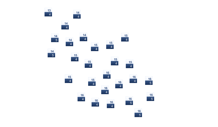 | 3 | 3 | 4 | 7 | 10 | 14 | 15 | 16 | 14 | 10 | 7 | 6 |