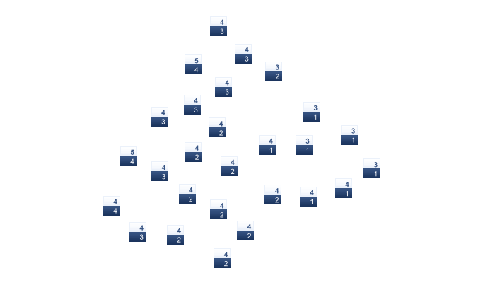 | 3 | 3 | 4 | 7 | 10 | 14 | 15 | 16 | 14 | 10 | 7 | 6 |