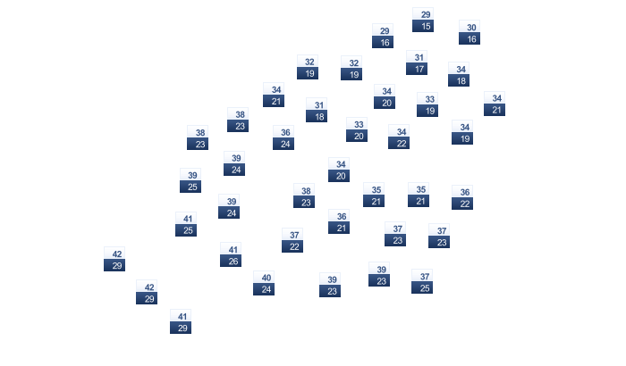 | 29 | 32 | 36 | 40 | 41 | 42 | 39 | 37 | 39 | 38 | 34 | 30 |