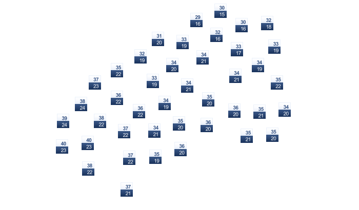 | 29 | 32 | 36 | 40 | 41 | 42 | 39 | 37 | 39 | 38 | 34 | 30 |