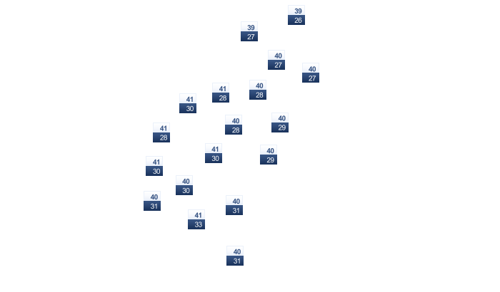 | 29 | 32 | 36 | 40 | 41 | 42 | 39 | 37 | 39 | 38 | 34 | 30 |