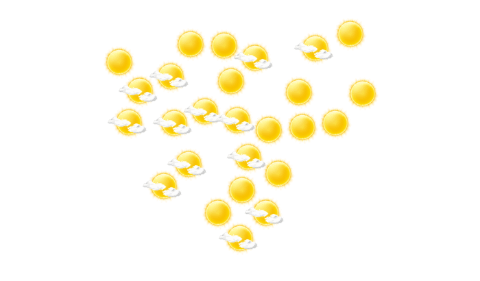 In Kourteydo bilden sich von Tagesbeginn bis zum Nachmittag leichte Wolken und die Temperaturen liegen zwischen 24 und 38°C. Am Abend ist es in Kourteydo bewölkt bei Temperaturen von 28 bis 33°C. Nachts ist ein Blick auf die Sterne nur vereinzelt bei sonst wolkigem Himmel möglich bei Tiefsttemperaturen von 26°C.