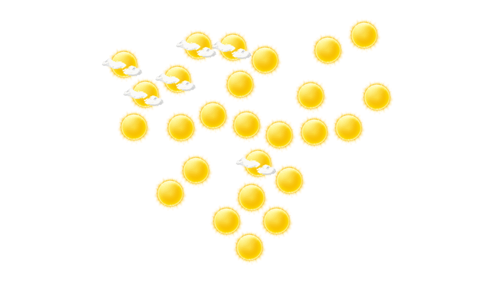 In Kourteydo gibt es am Tag lockere Bewölkung bei Werten von 20 bis zu 34°C. In der Nacht gibt es einen wolkenlosen Himmel bei einer Temperatur von 21°C.