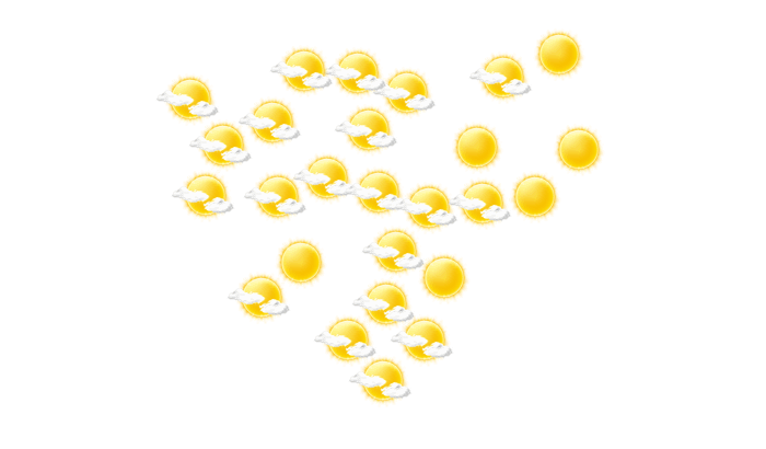 In Téra wechseln sich morgens Wolken und Sonne ab bei Werten von 28°C. Im weiteren Tagesverlauf stören nur einzelne Wolken den sonst blauen Himmel bei Höchsttemperaturen bis zu 41°C. Am Abend gibt es in Téra keine Wolken bei Temperaturen von 34 bis 37°C. Nachts ist es wolkenlos bei Tiefstwerten von 29°C.