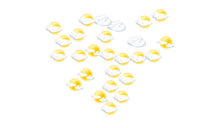 In Kollo ziehen am Morgen Wolkenfelder durch bei Werten von 25°C. Im weiteren Verlauf des Tages bleibt von mittags bis zum Abend hin die Wolkendecke geschlossen bei Temperaturen von 29 bis 34°C. In der Nacht stören nur einzelne Wolken den sonst klaren Himmel bei Tiefsttemperaturen von 26°C.