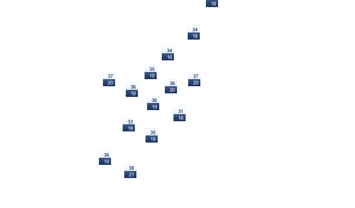 | 34 | 36 | 36 | 34 | 33 | 31 | 29 | 29 | 30 | 31 | 34 | 34 |