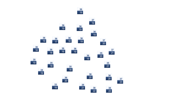 | 19 | 22 | 23 | 23 | 23 | 22 | 21 | 21 | 21 | 21 | 20 | 19 |