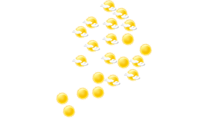 In Bama gibt es von morgens bis zum Nachmittag ungestörten Sonnenschein bei Werten von 19 bis zu 35°C. Abends gibt es in Bama überwiegend blauen Himmel mit vereinzelten Wolken bei Temperaturen von 24 bis 26°C. In der Nacht gibt es keine Wolken und die Sterne sind klar zu erkennen bei einer Temperatur von 19°C.
