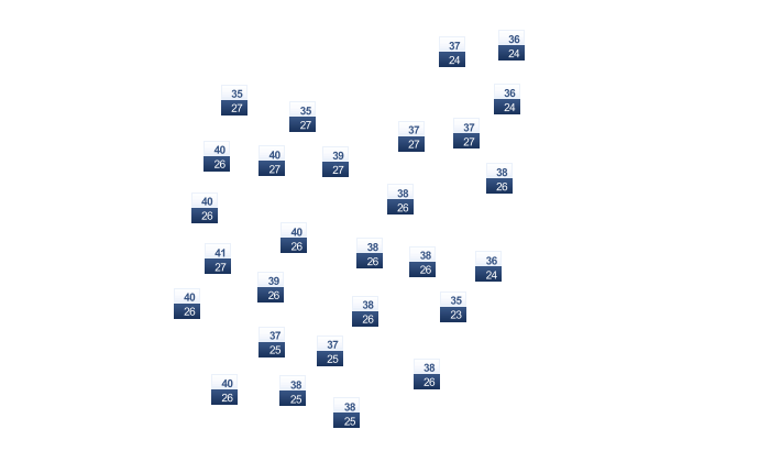 | 34 | 36 | 36 | 34 | 33 | 31 | 29 | 29 | 30 | 31 | 34 | 34 |