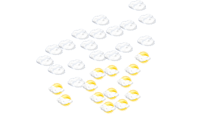 In Nkwerre stören am Morgen nur einzelne Wolken den sonst blauen Himmel und die Temperatur liegt bei 24°C. Darüber hinaus kommt es am Nachmittag und am Abend zu einem Mix aus Sonne und Wolken bei Temperaturen von 27 bis 34°C. Nachts ist es wolkig bei Tiefsttemperaturen von 24°C.