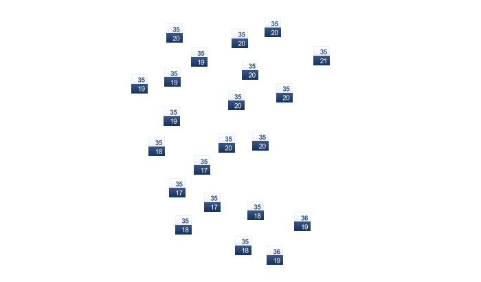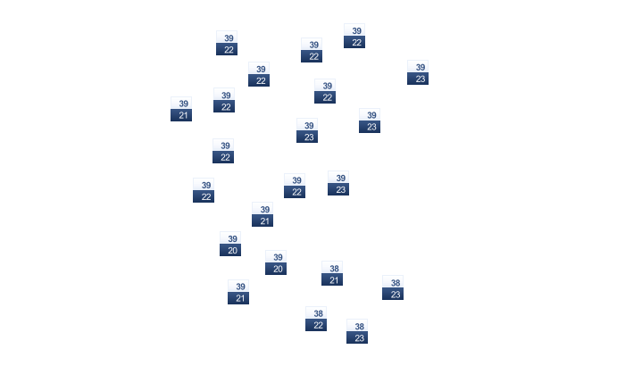 | 19 | 22 | 23 | 23 | 23 | 22 | 21 | 21 | 21 | 21 | 20 | 19 |