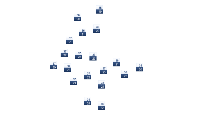 | 19 | 22 | 23 | 23 | 23 | 22 | 21 | 21 | 21 | 21 | 20 | 19 |