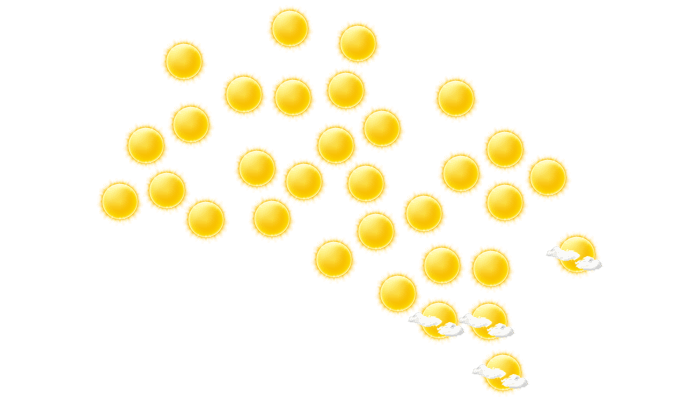 In Minna gibt es tagsüber keine Wolken, die Sonne scheint bei Werten von 22 bis zu 38°C. Nachts ist es klar bei Tiefsttemperaturen von 24°C.