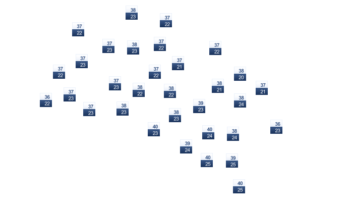 | 19 | 22 | 23 | 23 | 23 | 22 | 21 | 21 | 21 | 21 | 20 | 19 |