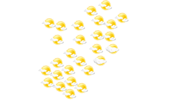 In Ilesa ist es am Morgen wolkig und die Temperatur liegt bei 22°C. Im Laufe des Mittags stören nur einzelne Wolken den sonst blauen Himmel bei Höchsttemperaturen bis zu 36°C. Am Abend bleibt in Ilesa die Wolkendecke geschlossen bei Werten von 26 bis zu 29°C. In der Nacht ist es überwiegend dicht bewölkt und die Luft kühlt sich auf 21°C ab.