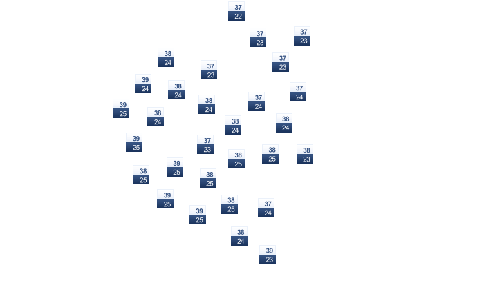 | 19 | 22 | 23 | 23 | 23 | 22 | 21 | 21 | 21 | 21 | 20 | 19 |