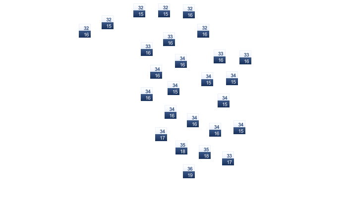 | 34 | 36 | 36 | 34 | 33 | 31 | 29 | 29 | 30 | 31 | 34 | 34 |