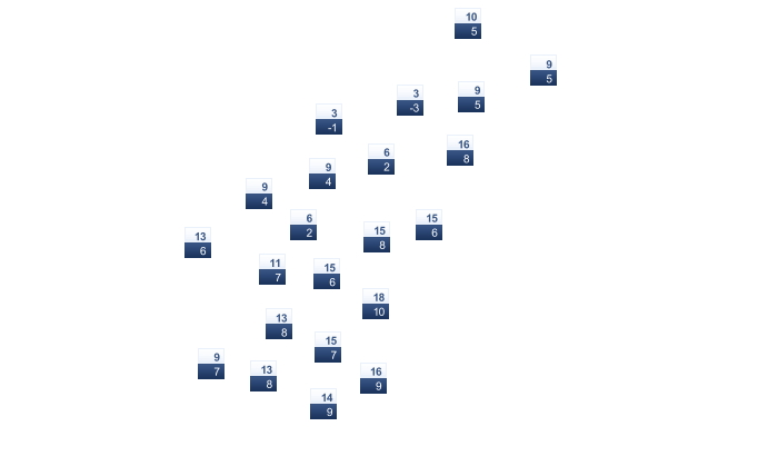 | -9 | -7 | -1 | 6 | 11 | 16 | 21 | 22 | 16 | 9 | 2 | -6 |