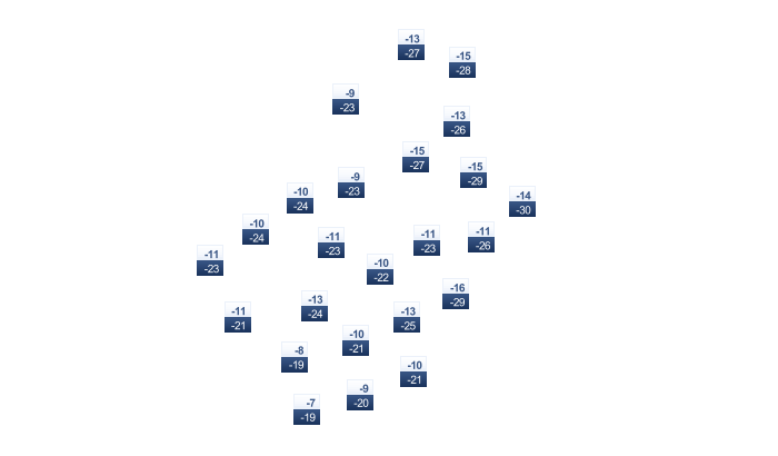 | -9 | -7 | -1 | 6 | 11 | 16 | 21 | 22 | 16 | 9 | 2 | -6 |