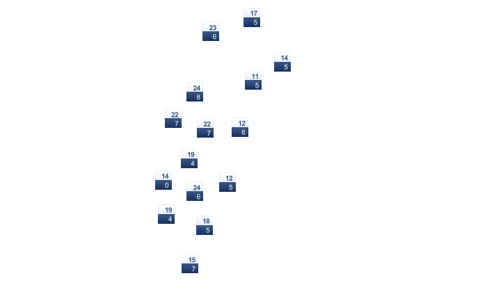 | 0 | 2 | 8 | 15 | 21 | 25 | 28 | 29 | 25 | 19 | 11 | 2 |