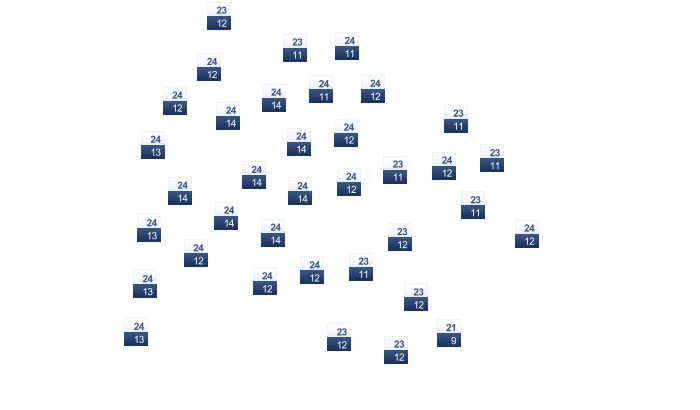 0 | 2 | 8 | 15 | 21 | 25 | 28 | 29 | 25 | 19 | 11 | 2 |