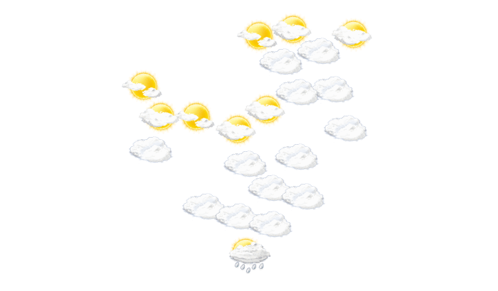 In Hyesan kommt es am Tag zu einem Mix aus Sonne und Wolken bei Werten von 2 bis zu 12°C. In der Nacht ist es wolkig bei Tiefstwerten von 1°C.