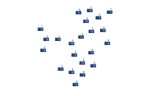| -9 | -7 | -1 | 6 | 11 | 16 | 21 | 22 | 16 | 9 | 2 | -6 |