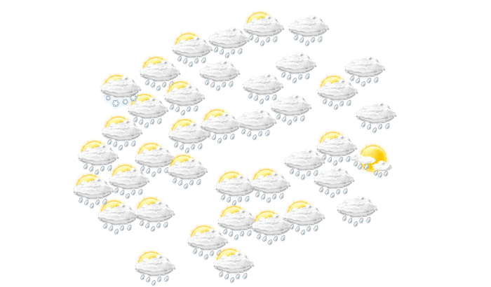 In Cegrane gibt es den ganzen Tag Regen bei Werten von 6 bis zu 8°C. Nachts gibt es Regen bei Tiefsttemperaturen von 5°C. Böen können Geschwindigkeiten zwischen 6 und 7 km/h erreichen.