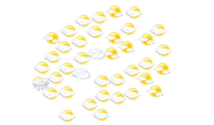 In Vodovrati ist es den ganzen Tag vielfach wolkig, gebietsweise kann sich auch die Sonne durchsetzen bei Werten von 1 bis zu 5°C. Nachts ist ein Blick auf die Sterne nur vereinzelt bei sonst wolkigem Himmel möglich bei Tiefstwerten von 0°C. Mit Böen zwischen 4 und 17 km/h ist zu rechnen.