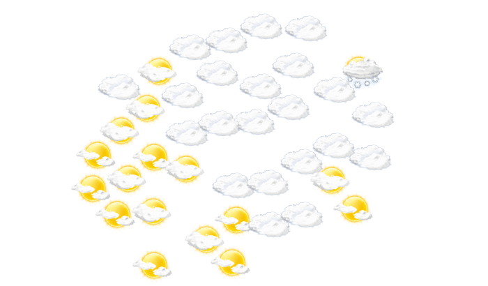 In Krusevo ist es tagsüber bewölkt und die Temperaturen liegen zwischen -2 und 5°C. Nachts überwiegt dichte Bewölkung, aber es bleibt trocken bei einer Temperatur von -2°C. Mit Böen zwischen 27 und 36 km/h ist zu rechnen.