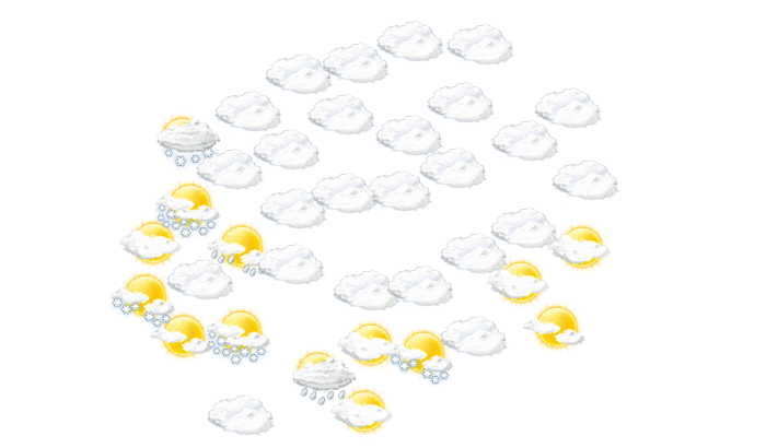 In Pehčevo gibt es am Morgen nur selten Lücken in der Wolkendecke bei Werten von 1°C. Darüber hinaus überwiegt am Nachmittag und am Abend dichte Bewölkung aber es bleibt trocken bei Temperaturen von 2 bis 7°C. Nachts ziehen Wolkenfelder durch bei einer Temperatur von 1°C. Mit Böen zwischen 16 und 24 km/h ist zu rechnen.
