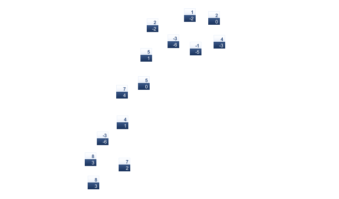 | -6 | -5 | -4 | 0 | 5 | 10 | 12 | 12 | 8 | 3 | -2 | -4 |