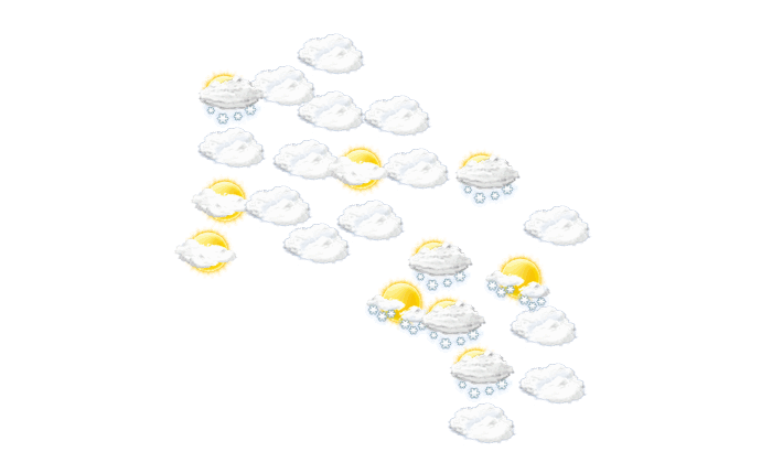 In Hønefoss sind am Morgen Teile des Himmels mit Wolken bedeckt, die Sonne ist aber zwischendurch sichtbar bei Werten von -5°C. Im weiteren Tagesverlauf schneit es von mittags bis zum Abend hin bei Temperaturen von -2 bis -1°C. In der Nacht schneit es bei Tiefstwerten von -2°C. Mit Böen zwischen 5 und 21 km/h ist zu rechnen.