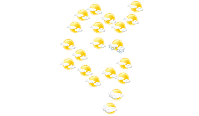 In Sarpsborg zeigt sich am Tag die Sonne nur vereinzelt bei sonst wolkigem Himmel bei Temperaturen von -6 bis -4°C. In der Nacht ist es locker bewölkt bei Tiefsttemperaturen von -10°C. Böen können Geschwindigkeiten zwischen 27 und 32 km/h erreichen.