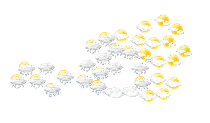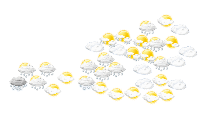 Heute ändert sich nur wenig. In einer westlichen bis nordwestlichen Strömung werden weiterhin dichte Wolken nach Österreich gelenkt. Diese bringen von Vorarlberg bis nach Niederösterreich zeitweise Regen, mit einer Schneefallgrenze von rund 1500 Meter. Längere trockene Phasen gibt es nur auf der Alpensüdseite in Kärnten und der Steiermark. Mit Temperaturen zwischen 7 und 14 Grad ist es überall sehr mild.