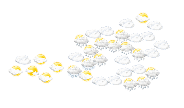 Heute wird es unbeständig mit vielen Wolken, nur ab und zu Sonne und einigen Schauern. Der Schauerschwerpunkt befindet sich bis in den Nachmittag hinein in der Osthälfte des Landes, gegen Abend dann im Westen und Süden. Die Schneefallgrenze pendelt sich bei rund 800 Metern Höhe ein. Der Westwind frischt kräftig auf und die Höchstwerte liegen zwischen 4 und 13, in 2000 Meter Höhe um minus 4 Grad.