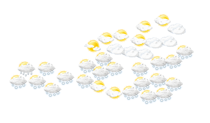 Der heutige Tag beginnt mit dichten Wolken und vielerorts schneit es, in manchen Tälern und im Süden kann es auch regnen. Nach und nach werden Schneefall und Regen aber weniger. Am Nachmittag wird es von Norden her trockener und freundlicher. Es weht eisiger, im Osten und südlich des Hauptkamms starker Nordwestwind, damit sind Schneeverwehungen möglich. Die Temperaturen steigen auf maximal -1 bis +5 Grad.