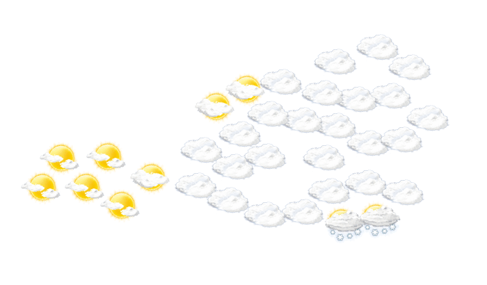 In Graz gibt es morgens keine Wolken, die Sonne scheint bei Temperaturen von -9°C. Im weiteren Tagesverlauf gibt es am Nachmittag und am Abend nur selten Lücken in der Wolkendecke und die Temperaturen liegen zwischen -4 und -1 Grad. Nachts ist es wolkig bei einer Temperatur von -5°C. Mit Böen zwischen 4 und 7 km/h ist zu rechnen.