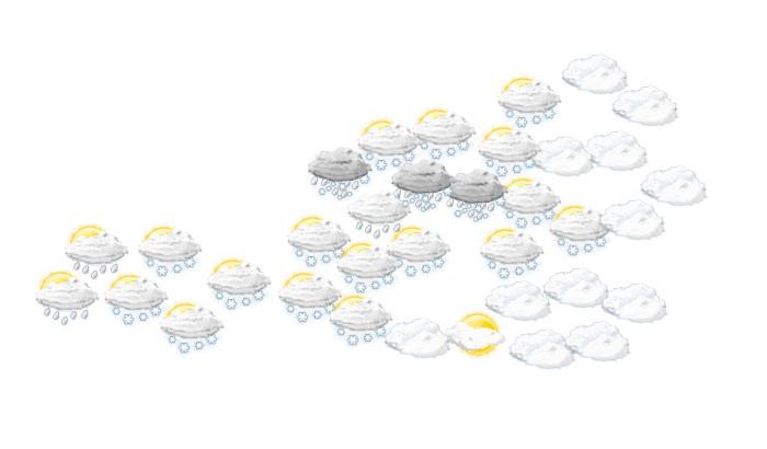 Besonders im Osten Österreichs scheint am Montagvormittag. Von Westen her ziehen Wolken auf, und in Vorarlberg und Nordtirol beginnt es bereits zu schneien und zu regnen. Die Schneefallgrenze steigt allmählich gegen 1500 Meter. Am Nachmittag regnet und schneit es auch von Salzburg bis ins westliche Niederösterreich, und es besteht Glatteisgefahr! Im Süden und vorerst auch ganz im Osten bleibt es trocken. Die Höchstwerte reichen von minus 6 bis plus 6 Grad. In 2000 Meter Höhe hat es minus 7 bis 0 Grad. In der Nacht breitet sich der Schneefall und der anschließende gefrierende Regen über Ostösterreich aus: Auch hier ist dann Glatteis zu befürchten!