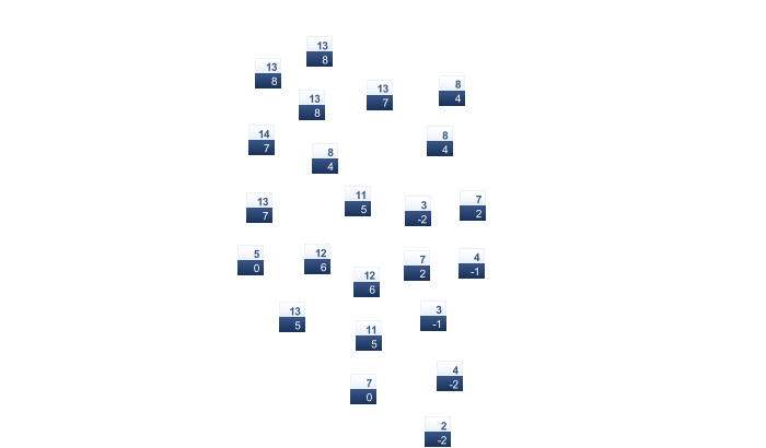 | 2 | 4 | 8 | 14 | 17 | 21 | 23 | 23 | 18 | 13 | 7 | 4 |