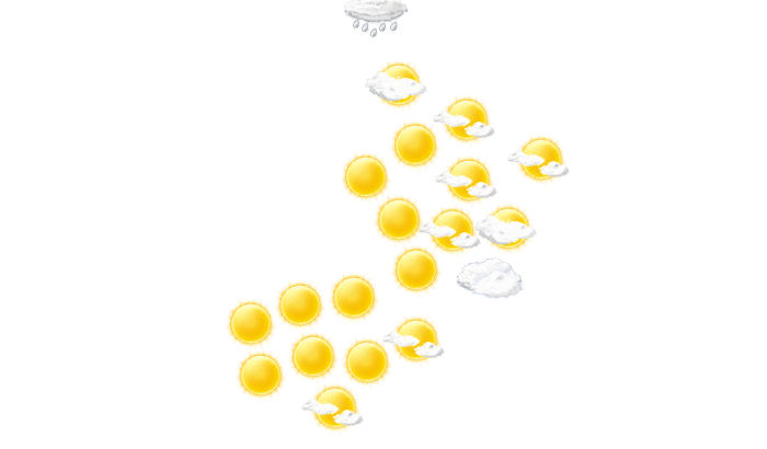 In Salala gibt es morgens nur selten Lücken in der Wolkendecke und die Temperatur liegt bei 22°C. Im weiteren Tagesverlauf gibt es von mittags bis zum Abend hin eine Mischung aus Sonne und Wolken und die Temperaturen liegen zwischen 24 und 26 Grad. Nachts ist es bewölkt, die Sterne sind nur vereinzelt zu sehen bei Werten von 22°C.