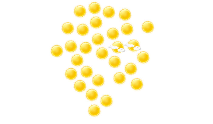 In Haymā’ strahlt am Morgen die Sonne bei Werten von 19°C. Später stören nur einzelne Wolken den sonst blauen Himmel und die Höchstwerte liegen bei 30°C. Am Abend gibt es in Haymā’ keine Wolken bei Werten von 22 bis zu 24°C. In der Nacht gibt es einen wolkenlosen Himmel bei einer Temperatur von 19°C.