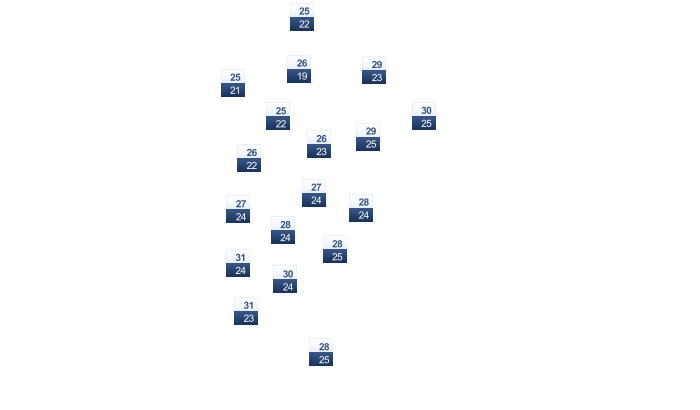 | 18 | 21 | 21 | 24 | 26 | 27 | 25 | 23 | 23 | 24 | 23 | 21 |