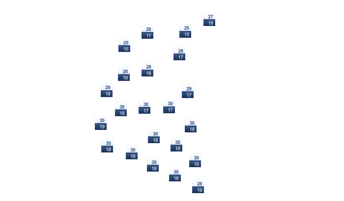 | 18 | 21 | 21 | 24 | 26 | 27 | 25 | 23 | 23 | 24 | 23 | 21 |